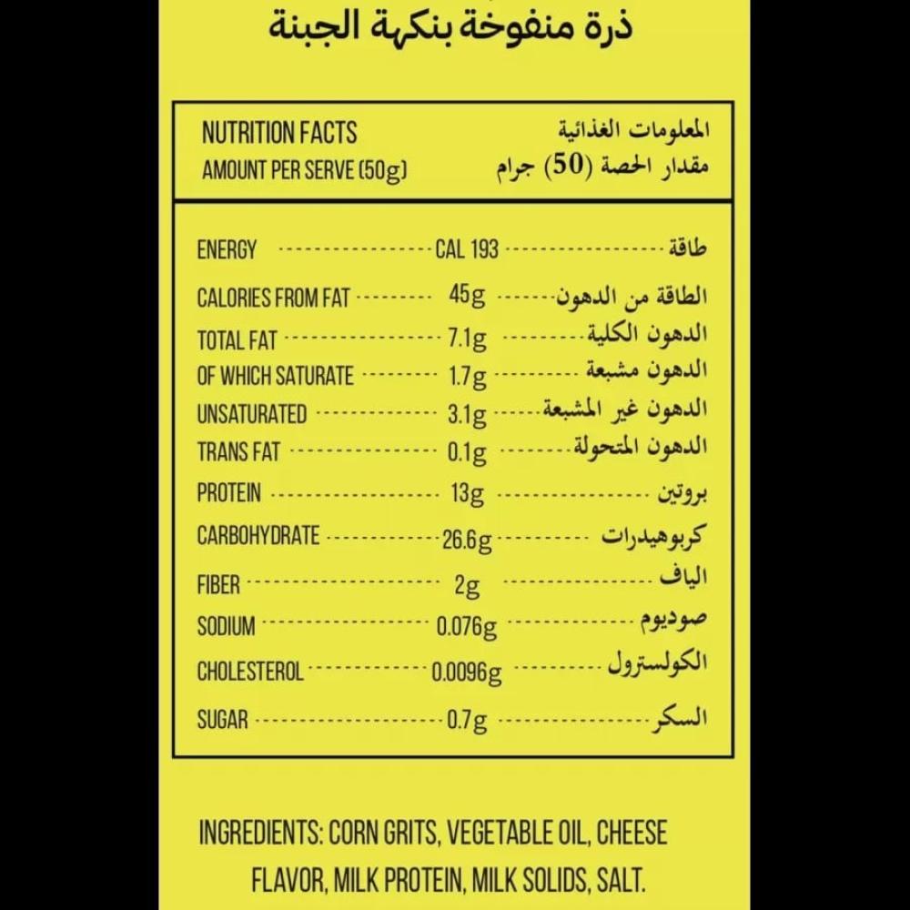 - شيبس Pro PUFFS يحتوي على قيمة غذائية ممتازة إنه غني بالكربوهيدرات والدهون الصحية والألياف مما يجعله اختيارًا مناسبًا لتعبئة طاقتك والحفاظ على حياة صحية متوازنة.