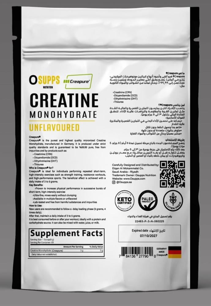 كرياتين كريابيور مونوهيدرات 300 جم 60 حصة Creapure Osupps