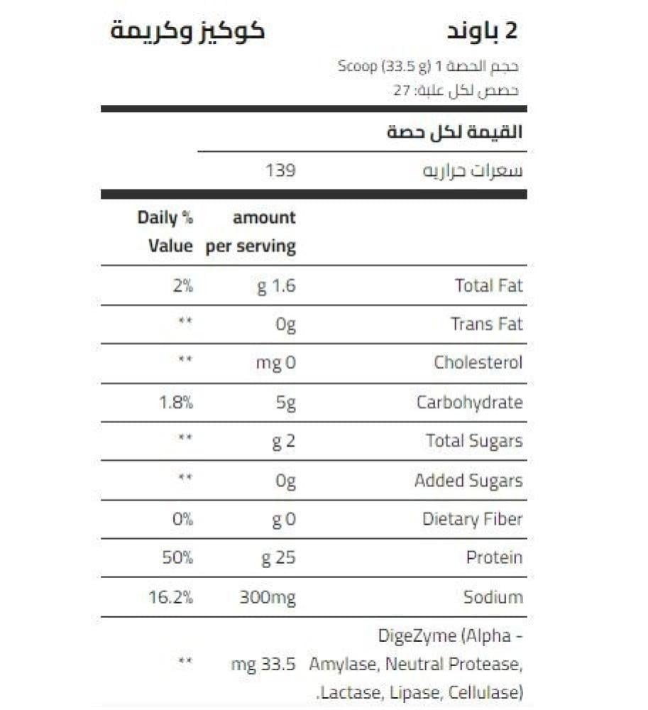 - دعم بناء العضلات: يحتوي على 25 جرام من البروتين عالي الجودة لكل حصة، مما يساهم في بناء العضلات بشكل فعال.